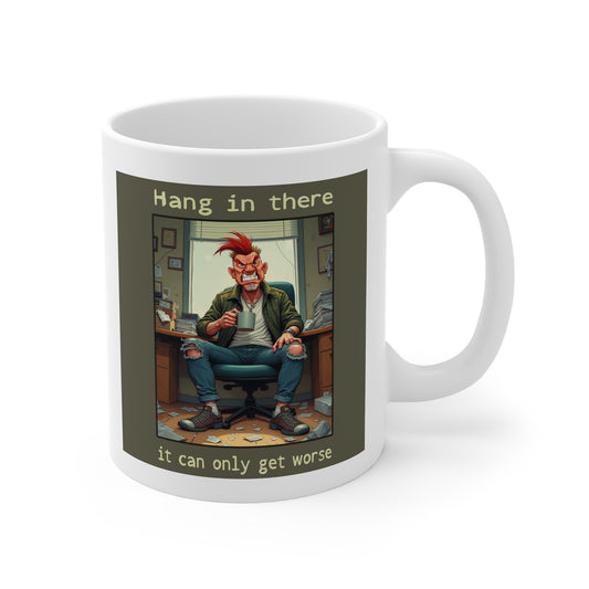 Motivational 11oz White Mug - "Hang in There, It Can Only Get Worse"