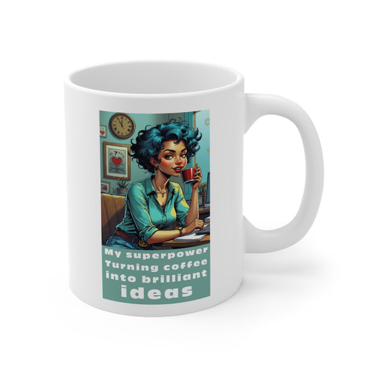 My Superpower: Coffee into Ideas Coffee Mug - Creative Morning Brew Cup, Gift for Coffee Lovers & Idea Generators