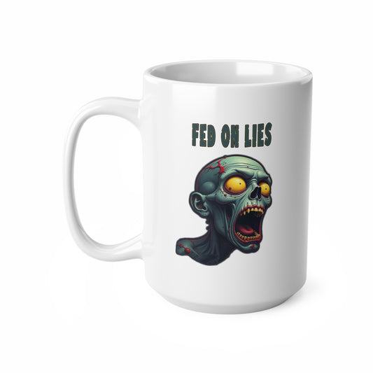 Zombie-Themed Ceramic Coffee Cups - "Fed on Lies" Design - Perfect for Halloween and Everyday Use