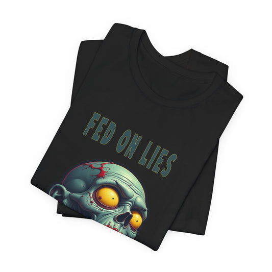 Zombie 'Fed On Lies' Unisex Short Sleeve Tee - Perfect for Halloween & Horror Fans